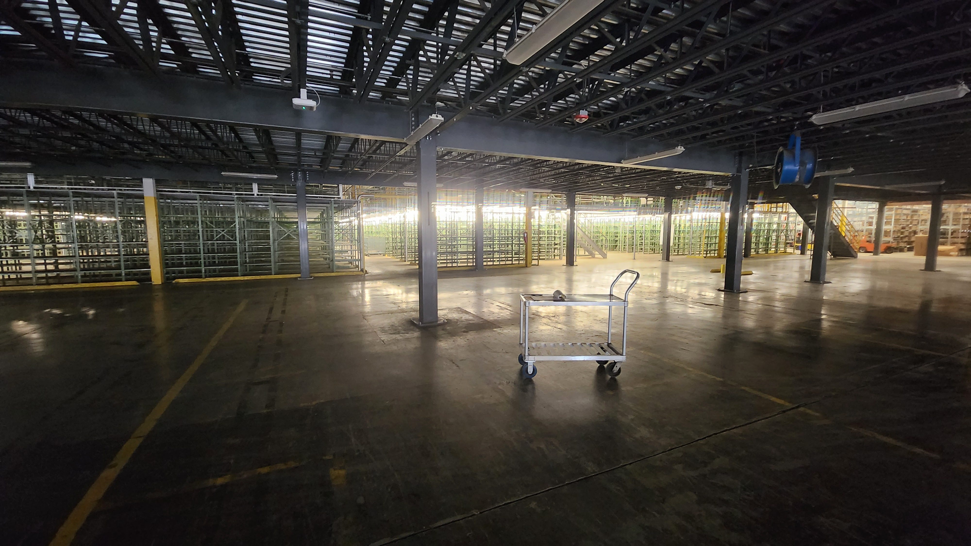 Parts PickerAn empty DC (distribution center)Robert PetersonJan 31, 20257ShareThis is the empty half of the distribution center where I work. A year ago, all of these shelves were full of parts. Now, it’s just dust and shadows. I love how the half-light makes the aluminum cart glow.